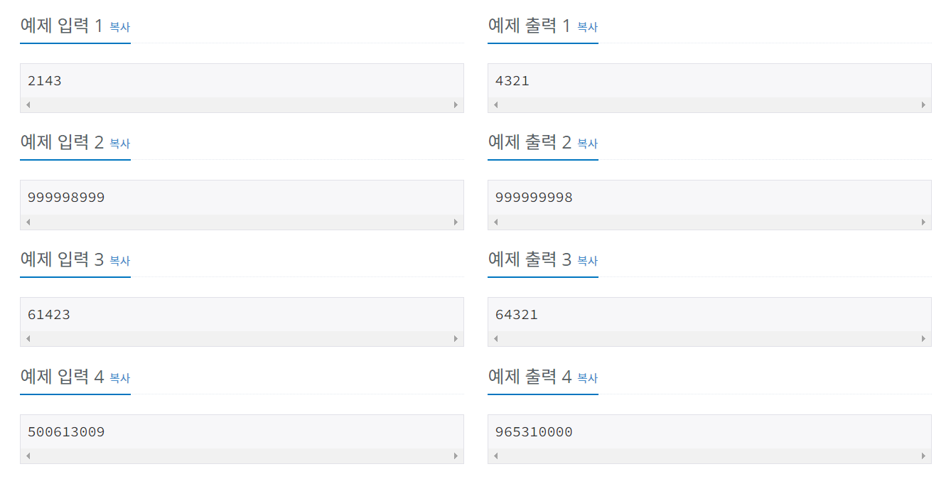 첫째 줄에 자리수를 내림차순으로 정렬한 수를 출력한다.