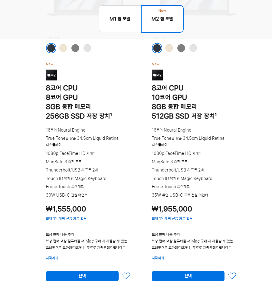 사실 외관상으론 별 차이 없어보인다. M1, M2칩 호불호가 너무 갈려서 더 고민해보긴 해야겠다.