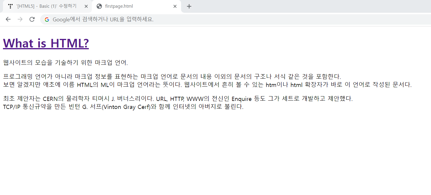 먼저 HTML 이 무엇인지 설명하는 'What is HTML' 페이지를 만들어보자.