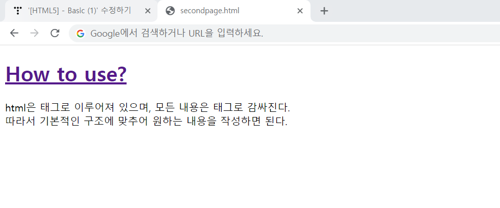여기서 <a href=" "> 라는 태그를 사용하면 다른 html 파일과 연결할 수 있다.