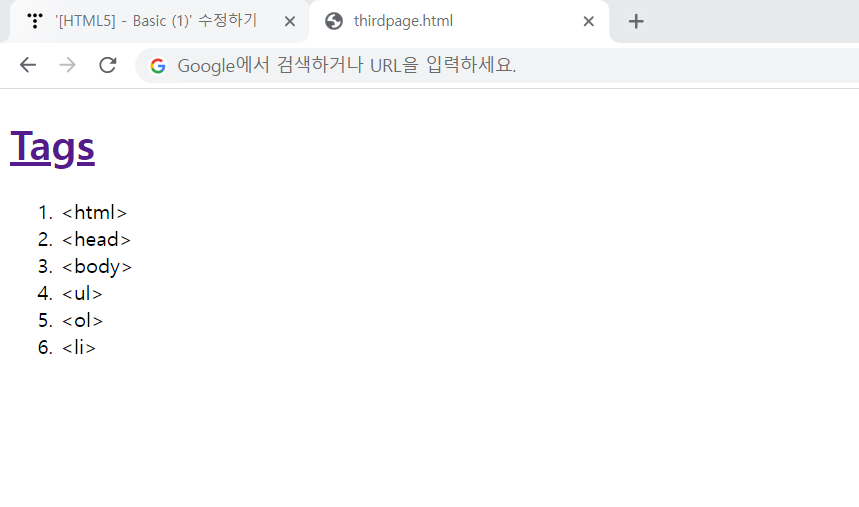 여기서 <ol> 태그와 <li> 태그가 등장한다. 간단하게 살펴보자.