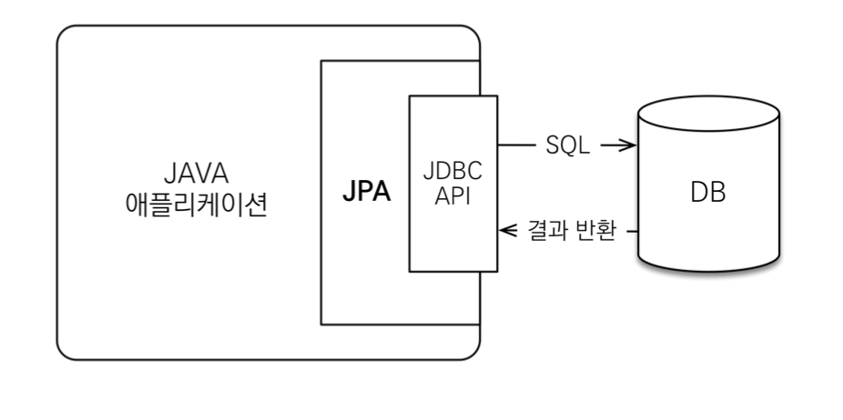 위 그림을 보면 JAVA 애플리케이션과 데이터베이스 사이에 JPA 가 위치하여 JDBC API 를 통해 서로 상호작용한다는 것을 알 수 있다.