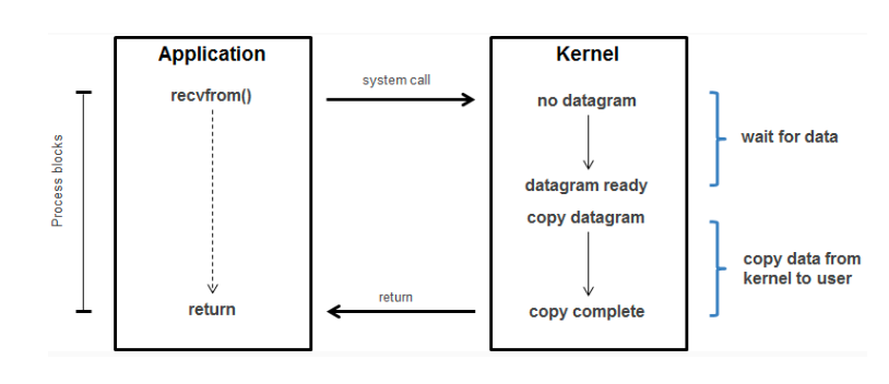 블로킹 I/O는 데이터를 읽거나 쓸 때, 해당 작업이 완료될 때까지 프로그램이나 스레드가 대기하는 방식이다. 데이터가 도착하거나 송신될 떄까지 입출력 작업이 블로킹되어 다음 코드나 작업으로 진행되지 않는다. 이는 입출력 작업이 완료될 때까지 해당 스레드가 아무런 작업을 수행하지 않는 상태를 의미한다.