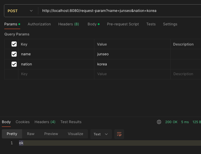 - ex) http://localhost8080/query-param?name=gildong&nation=korea
