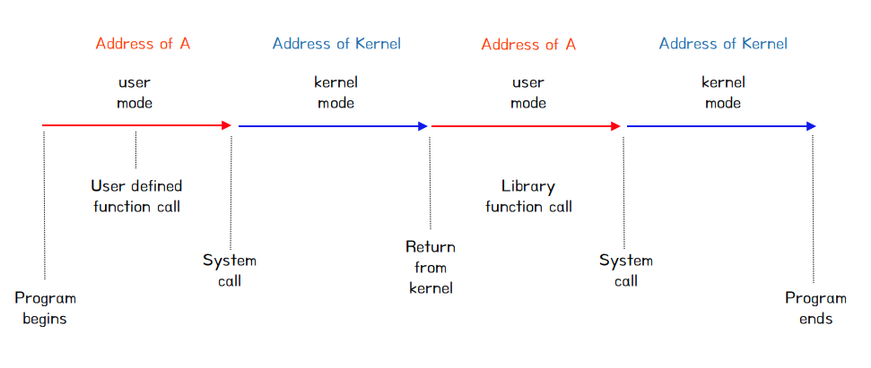 - System call : 운영체제가 커널에 접근하기 위한 인터페이스. 유저 프로그램이 운영체제의 서비스를 받기 위해 커널 함수를 호출할 때 사용된다.