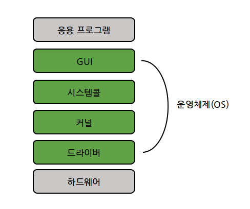 '운영체제(OP : Operating System)' 란 컴퓨터의 하드웨어 바로 위에 설치되어 사용자와 다른 소프트웨어, 하드웨어를 연결하는 소프트웨어 계층을 말한다.