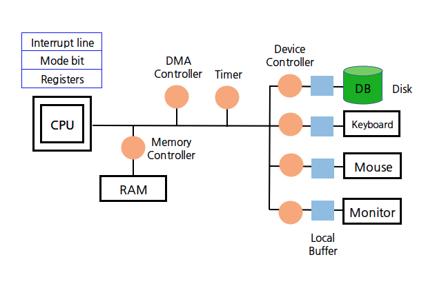 - 커널 모드 (0) : mode bit이 0일 때이다. 모든 컴퓨터 자원에 접근할 수 있는 모드이며, 운영체제가 CPU를 사용하는 상태이다.