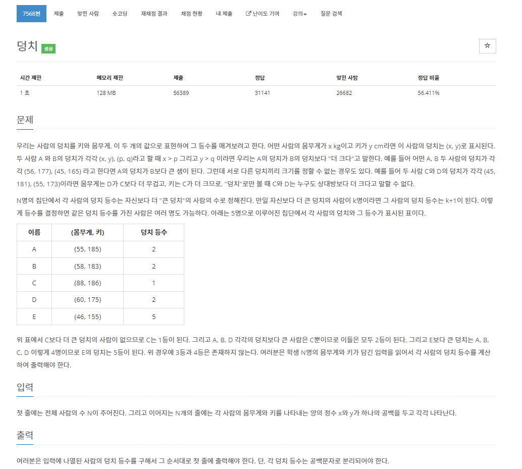 https://www.acmicpc.net/problem/7568